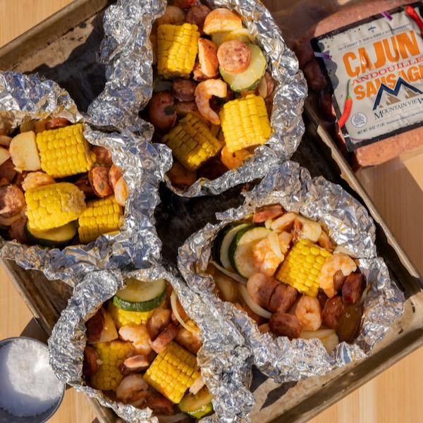Spiced Sweet Potato & Bacon Skewers with Sausage